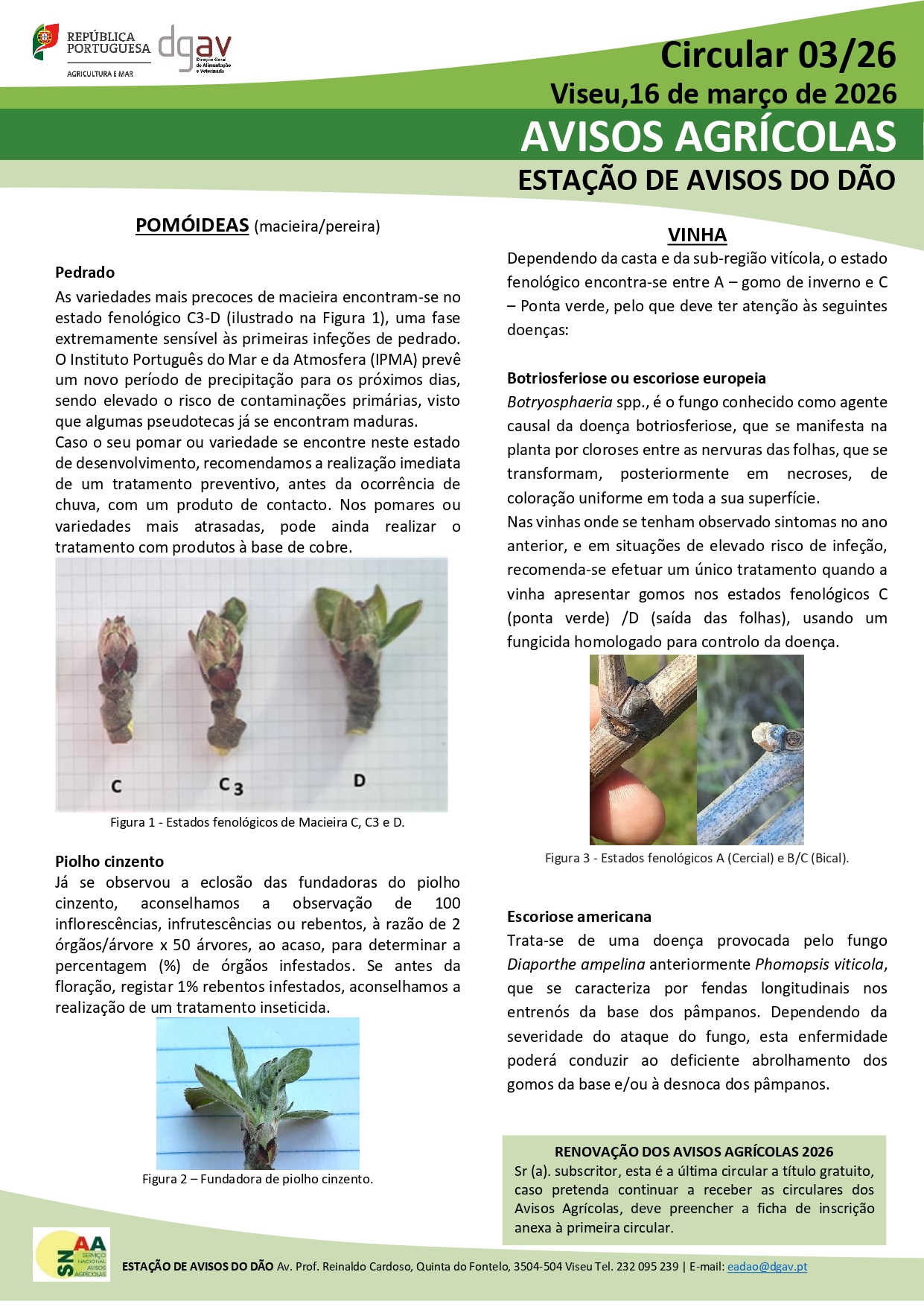 A Cooperativa da Beira Central divulga a mais recente circular da Estação de Avisos do Dão, com orientações atualizadas para os agricultores da região face às condições meteorológicas previstas.